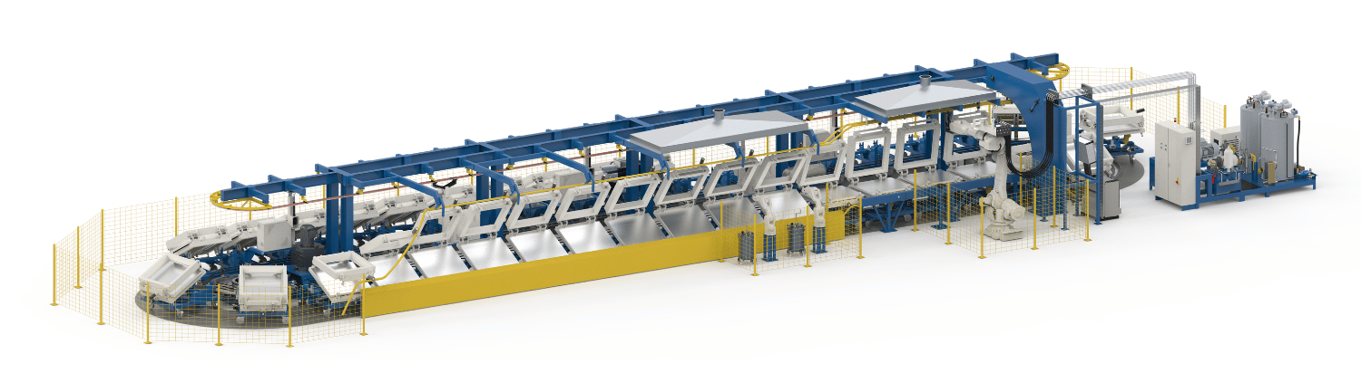 - Durable components, including mold carrier/cassette, industrial robot, and ground rail